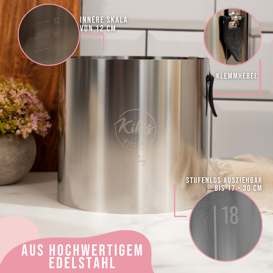 Kikis Tortenring XXL mit zwei Klemmhebel & Skala - Höhe 20cm